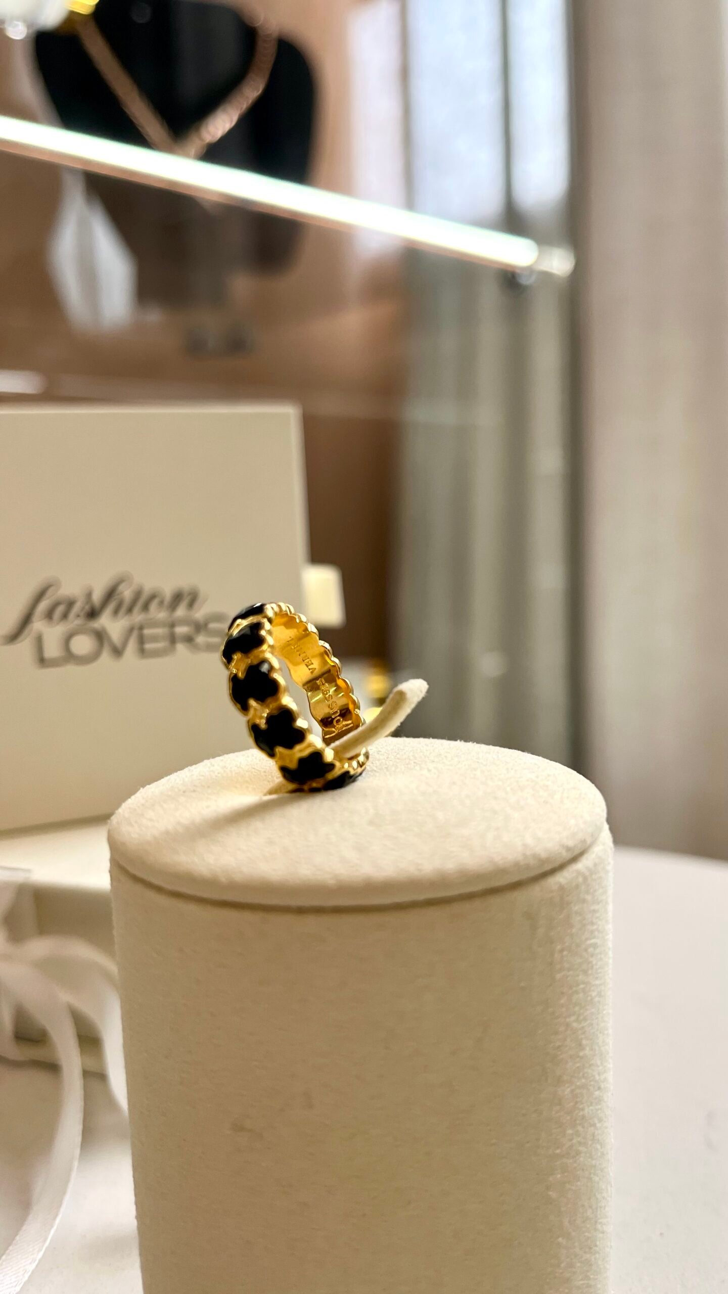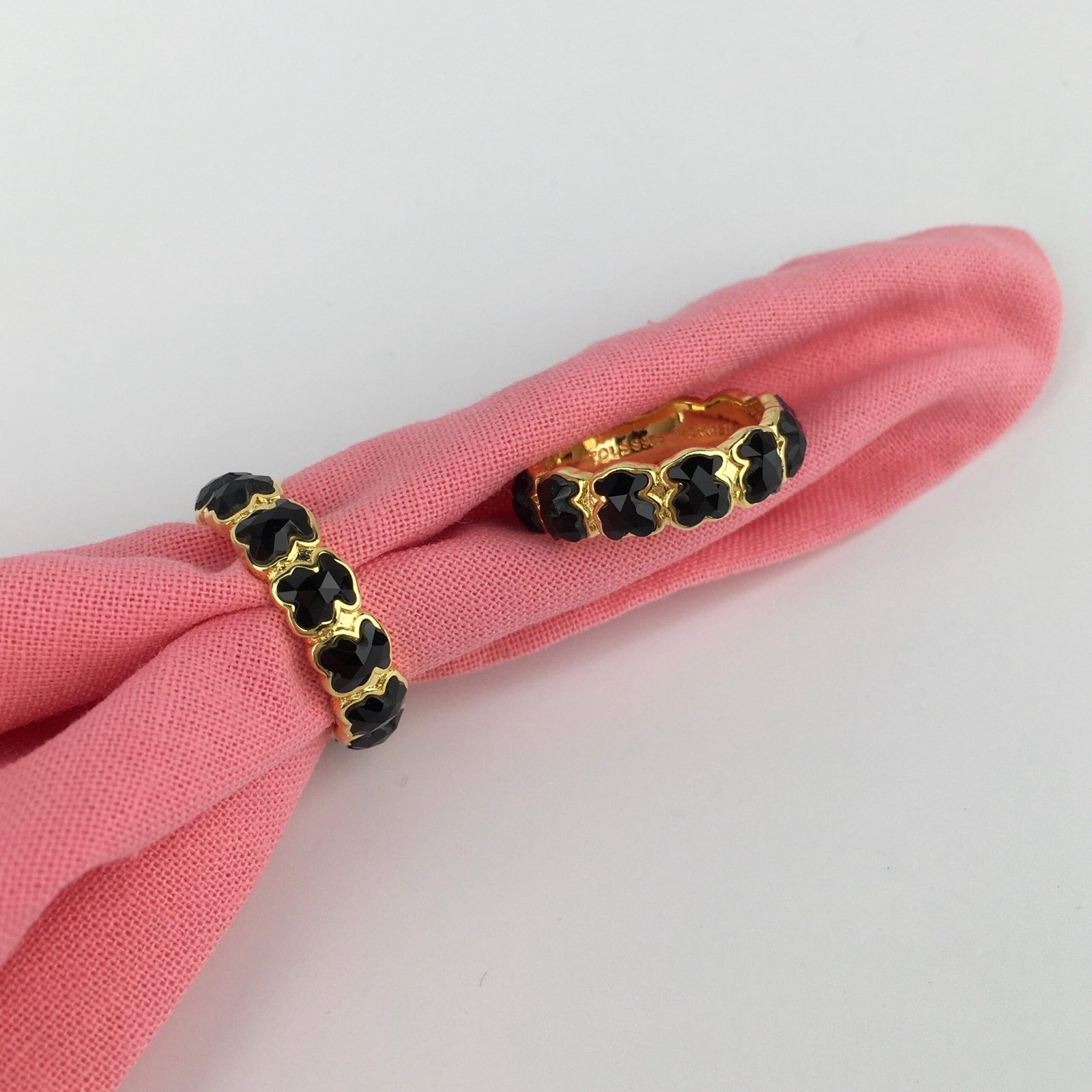 El Anillo Teddy Noir Gold destaca por su diseño continuo de ositos en tono negro, creando una pieza original y con personalidad.