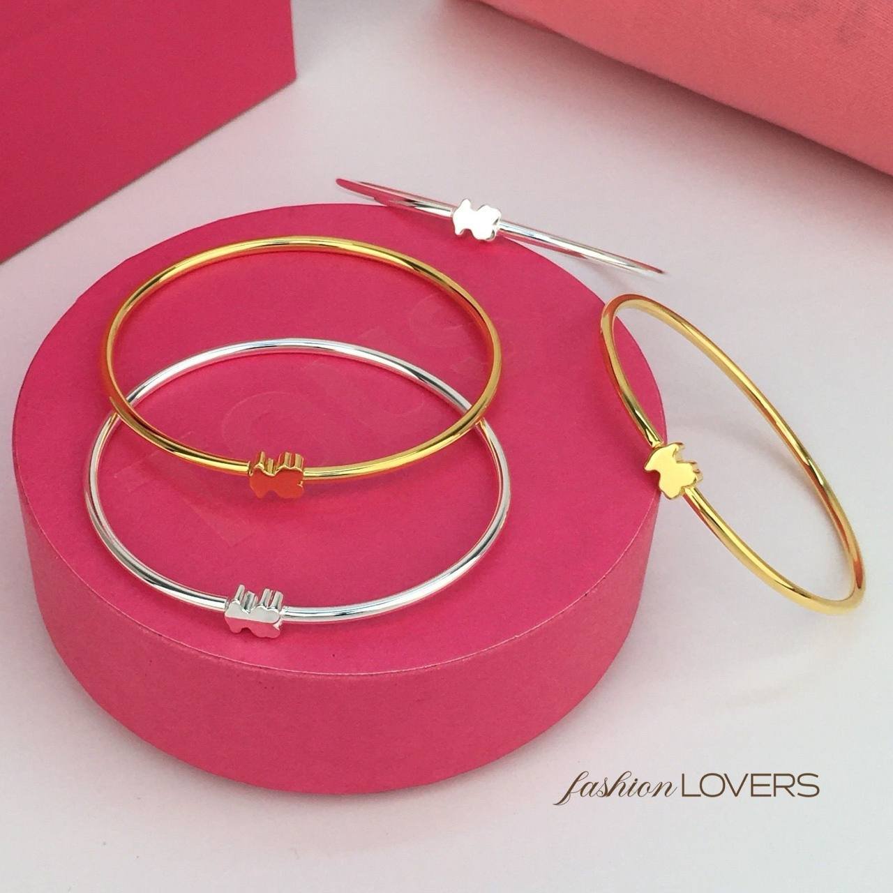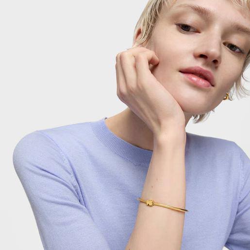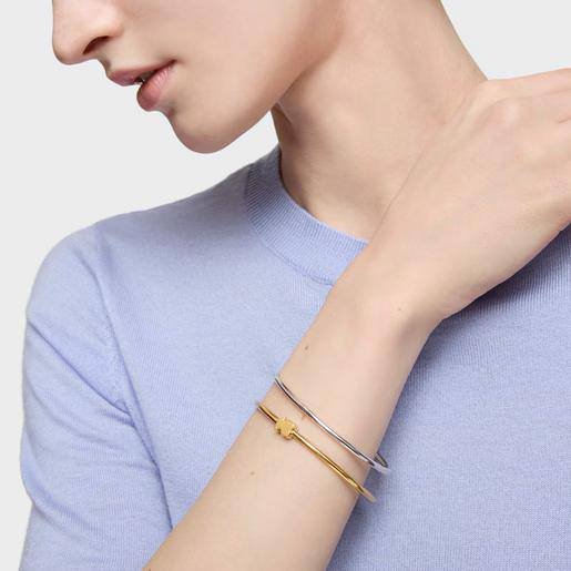 Su estructura rígida de líneas finas incorpora el icónico detalle Teddy en el centro, aportando un toque distintivo y moderno sin perder la esencia clásica. Es una joya versátil, ideal para llevar sola o combinar con otras pulseras para crear un look más completo.